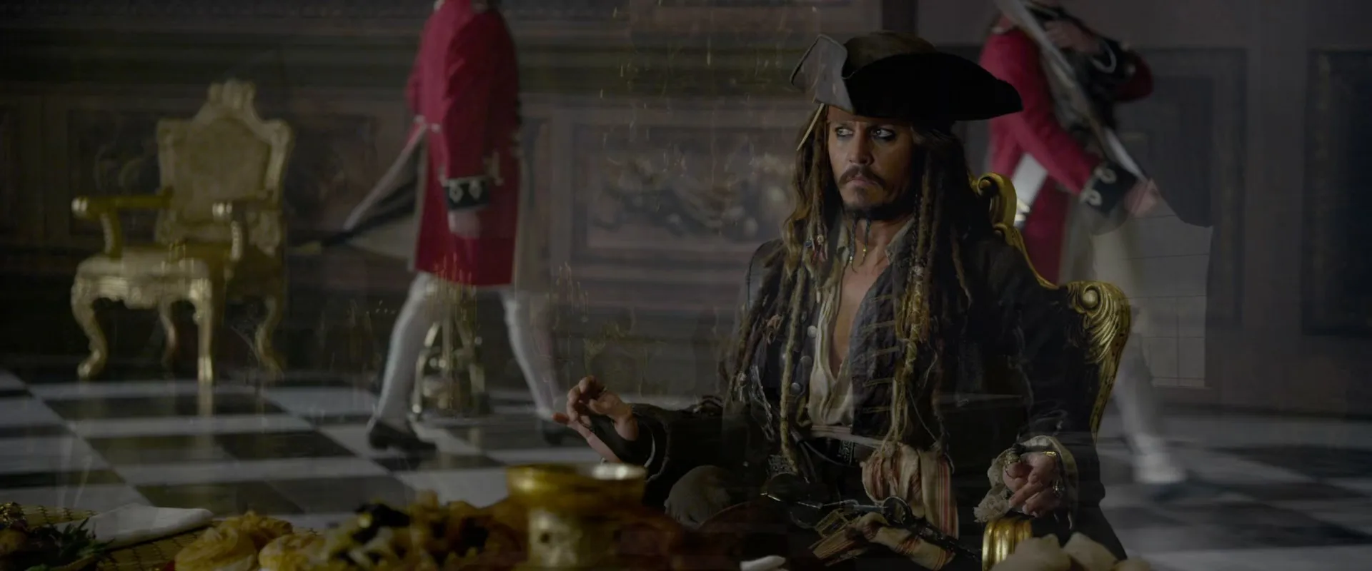 Cast: Johnny Depp as Jack Sparrow, Penélope Cruz as Angelica, Geoffrey Rush as Hector Barbossa, Ian McShane as Edward "Blackbeard" Teach, Kevin McNally as Joshamee Gibbs, Sam Claflin as Philip, Astrid Bergès-Frisbey as Syrena, Stephen Graham as Scrum, Keith Richards as Captain Teague, Richard Griffiths as King George, Greg Ellis as Groves, Damian O'Hare as Gillette, Óscar Jaenada as The Spaniard, Anton Lesser as Lord John Carteret, Roger Allam as Prime Minister Henry Pelham, Judi Dench as Society Lady, Christopher Fairbank as Ezekiel, Paul Bazely as Salaman, Bronson Webb as Cook, Richard Thomson as Derrick, Yuki Matsuzaki as Garheng, Robbie Kay as Cabin Boy, Steve Evets as Purser, Ian Mercer as Quartermaster, Deobia Oparei as Gunner, Gemma Ward as Tamara - First Mermaid, Sebastian Armesto as King Ferdinand, Juan Carlos Vellido as Spanish Sea Captain, Tristan Laurence Perez as Spanish Fisherman, Norberto Morán as Spanish Castaway, Gerard Monaco as Spanish Officer, Tyrone Lopez as Spanish Soldier, Luke Roberts as Captain of the Guard, Daniel Ings as Guard, Emilia Jones as English Girl, Patrick Kennedy as English Father, Jody Halse as Jailor, Clifford Rose as Bailiff, Paul Hunter as Foreman, Jorgelina Guadalupe Airaldi as Mermaid, Brea Berrett as Mermaid, Toni Busker as Mermaid, Sanya Hughes as Mermaid, Daphne Joy as Mermaid, Antoinette Kalaj as Mermaid, Derek Mears as Master-at-Arms, Danny Le Boyer as Yeoman, Kitt Barrie as Courtroom Wench, Steve Morphew as Courtroom Heckler, Alan J. Utley-Moore as Justice Smith, Fileena Bahris as Mermaid (uncredited), Gintare Beinoraviciute as Villager (uncredited), Nicola Bertram as English Woman (uncredited), Bern Collaço as Spanish Commanding Officer (uncredited), Andrew Crayford as Spanish Officer (uncredited), Jason Curle as Spanish Pirate (uncredited), Kristofer Dayne as Queen Anne's Pirate (uncredited), Nichola Fynn as Flower Seller (uncredited), Sean Francis George as Spanish Soldier (uncredited), Bobby Holland Hanton as English Guard (uncredited), Randy Herman as Spanish Soldier (uncredited), Harley Jay as Junior British Officer (uncredited), Aaron King as Juror (uncredited), Jeremy King as Beckett's Guard (uncredited), Matt Lasky as Queen Anne's Pirate (uncredited), LeJon Stewart as Queen Anne's Pirate (uncredited), Teresa Mahoney as Hero Mother (uncredited), Edward Mitchell as Young Spanish Officer (uncredited), Kelly Mumme as Mermaid (uncredited), Salomon Passariello as Queen Anne's Pirate (uncredited), Siegfried Peters as British Sailor (uncredited), David Pinkus as London Town Crier (uncredited), Jean Pierre Prats as Spanish Soldier (uncredited), Steve Saunders as Pewter Seller (uncredited), Santi Scinelli as Spanish Officer (uncredited), Kristen StephensonPino as Mermaid / Body (uncredited), Richard Stoker as Pirate (uncredited), Robert Stone as Paddy Wagon Gaoler (uncredited), Sean Talo as Spanish Soldier (uncredited), Harvey Walsh as English Boy (uncredited), Loretta Walsh as English Girl (uncredited), Hannah Walters as Woman at The Captain's Daughter (uncredited), Claira Watson Parr as Maid (uncredited), Chuck Williams as Queen Anne's Revenge Pirate (uncredited)