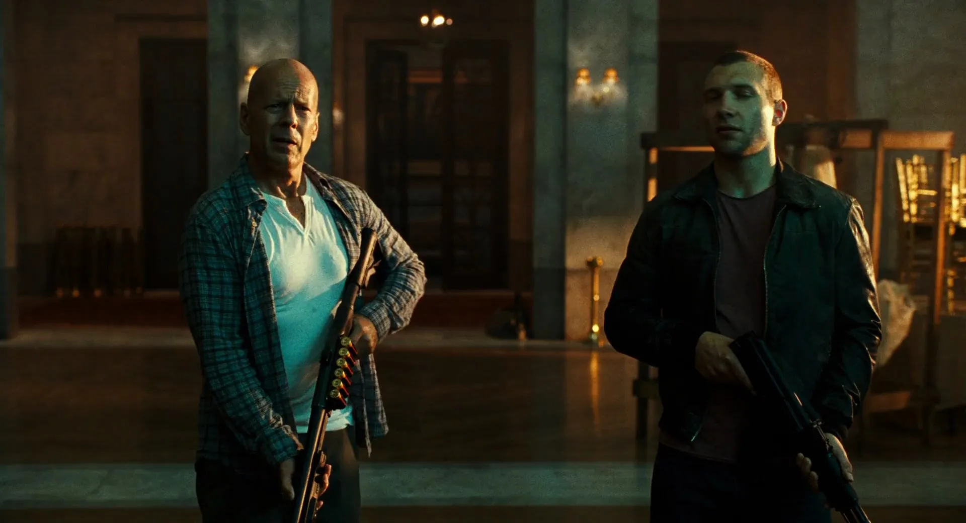 Cast: Bruce Willis as John McClane, Jai Courtney as Jack McClane, Sebastian Koch as Komarov, Mary Elizabeth Winstead as Lucy McClane, Yuliya Snigir as Irina, Cole Hauser as Collins, Radivoje Bukvić as Alik, Amaury Nolasco as Murphy, Sergey Kolesnikov as Chagarin, Roman Luknár as Anton, Zolee Ganxsta as Russian Mafia Member, Péter Takátsy as Prosecutor, Pasha D. Lychnikoff as Taxi Driver, Megalyn Echikunwoke as Reporter, Melissa Tang as Lucas, Attila Árpa as Russian Mafia Member, Norbert Növényi as Russian Mafia Member, Martin Hindy as Mako, Rico Simonini as Colonel, Aldis Hodge as Foxy, April Grace as , Anne Vyalitsyna as (uncredited)